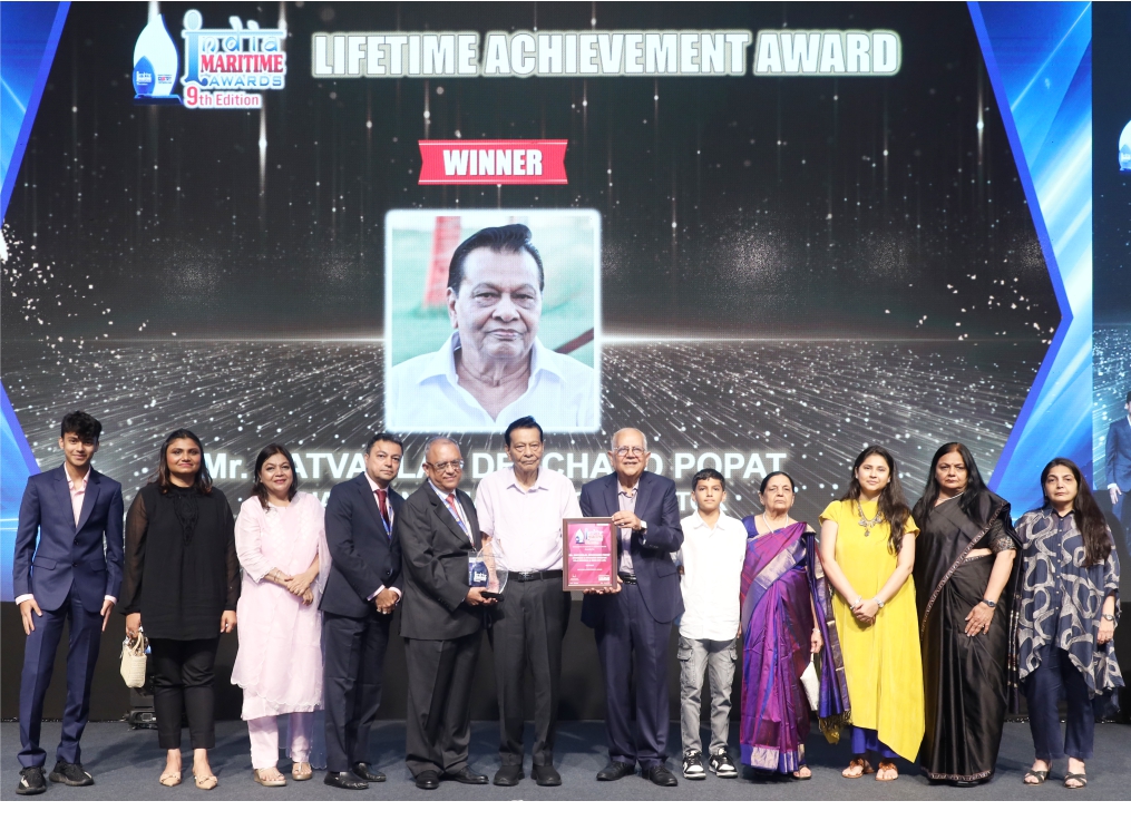 Lifetime Achievement Award was presented to Mr. Natvarlal Devchand Popat, Chairman & Managing Director, Velji Dosabhai & Sons Pvt. Ltd., in recognition of his outstanding and lifelong contributions to the Indian maritime and logistics industry. With a legacy built over decades, Mr. Popat has been a visionary leader, steering Velji Dosabhai & Sons towards becoming one of the most respected and enduring names in the industry.
