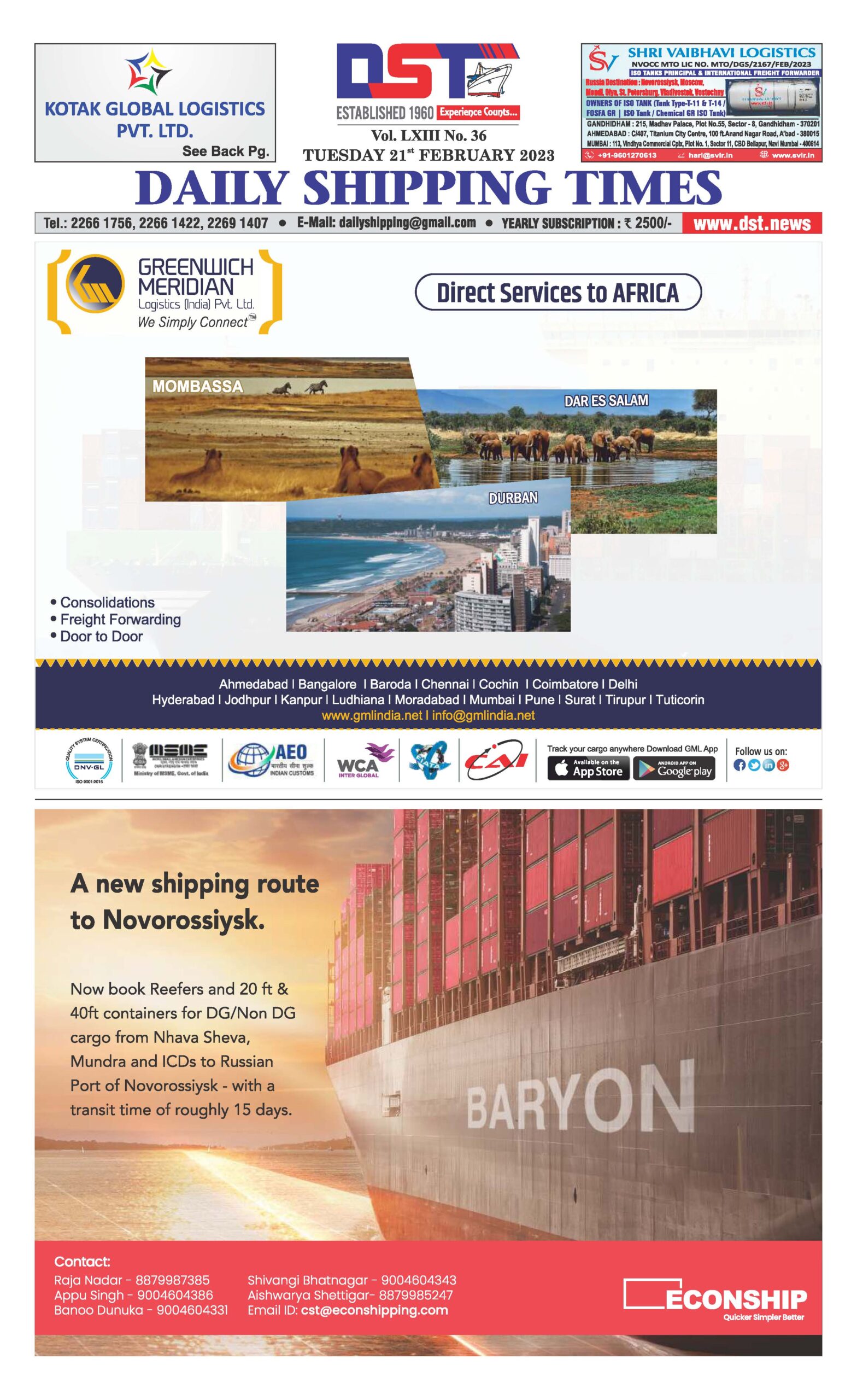Thank you for your interest in Daily Shipping Times subscription. Please check our yearly charges to subscribe to Daly Shipping Times Digital Copy. The cost includes the print edition copy in select locations as well. Kindly note, 1 subscription login can be accessed by 3 users/devices at a time. For detailed information, please feel free to contact us.